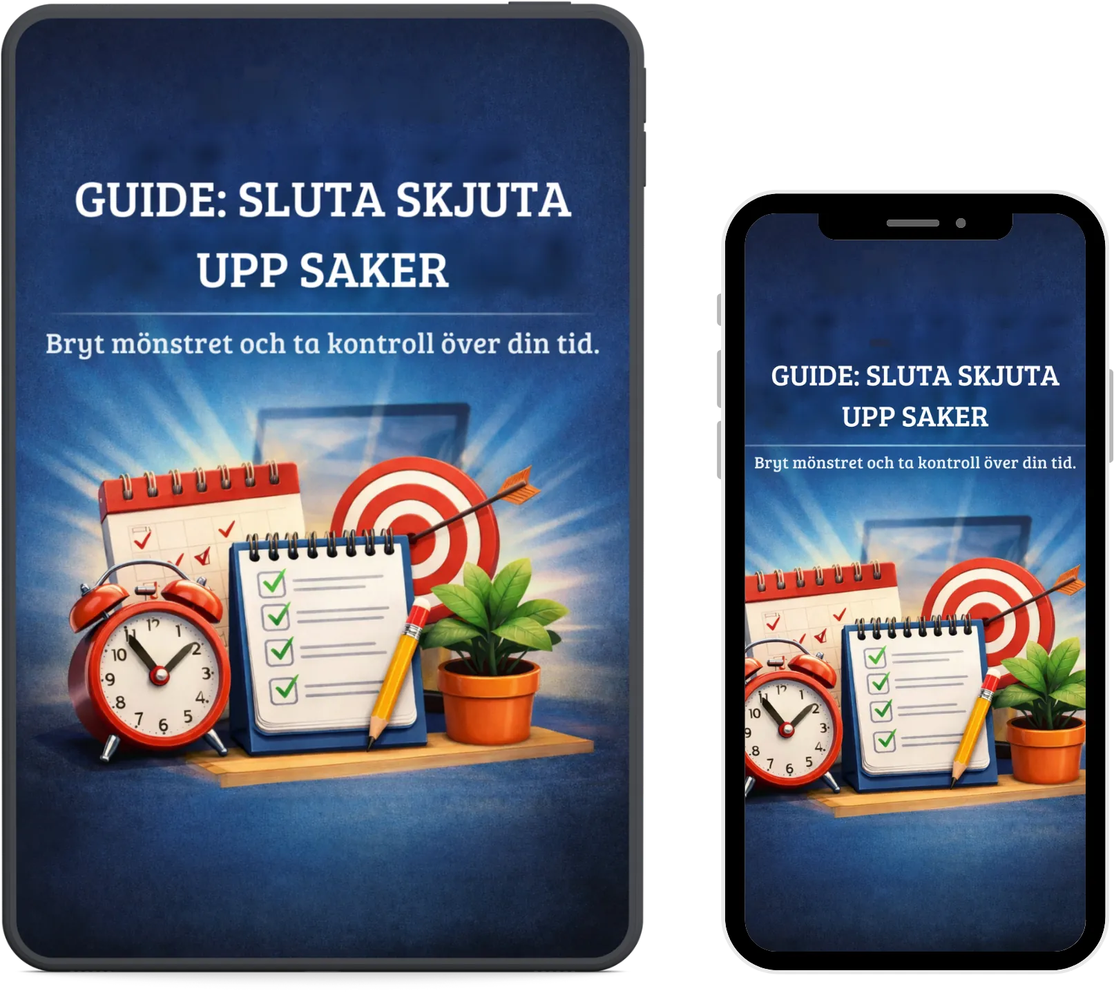 Det är inte lathet. Det är ett mönster: du blir distraherad, du överbelastar dig, du säger ”sen”… och plötsligt är dagen slut. Under tiden står dina mål still, och ditt huvud får aldrig riktigt vila.