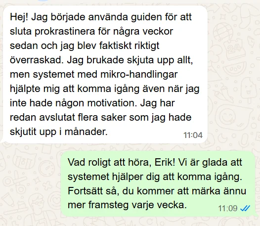 Missa inte chansen att få guiden med 75% rabatt. Bryt uppskjutandets cykel, ta tillbaka kontrollen över din tid och bli en person som agerar — redan idag. Ingår: hela guiden + 3 strategiska e-böcker som bonus.