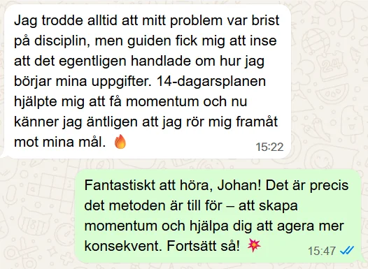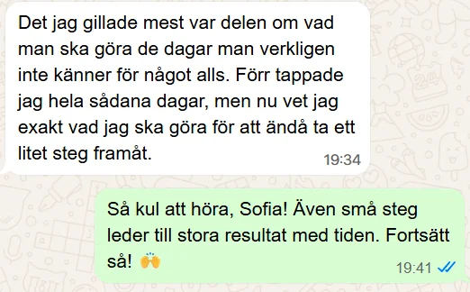 Du behöver inte känna dig inspirerad. Du följer ett praktiskt system som hjälper dig att agera även när energin är låg.