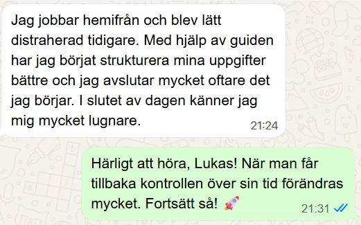 På några veckor märker du skillnaden: fler saker blir klara, färre hängande måsten och en tydlig känsla av framåtsteg.